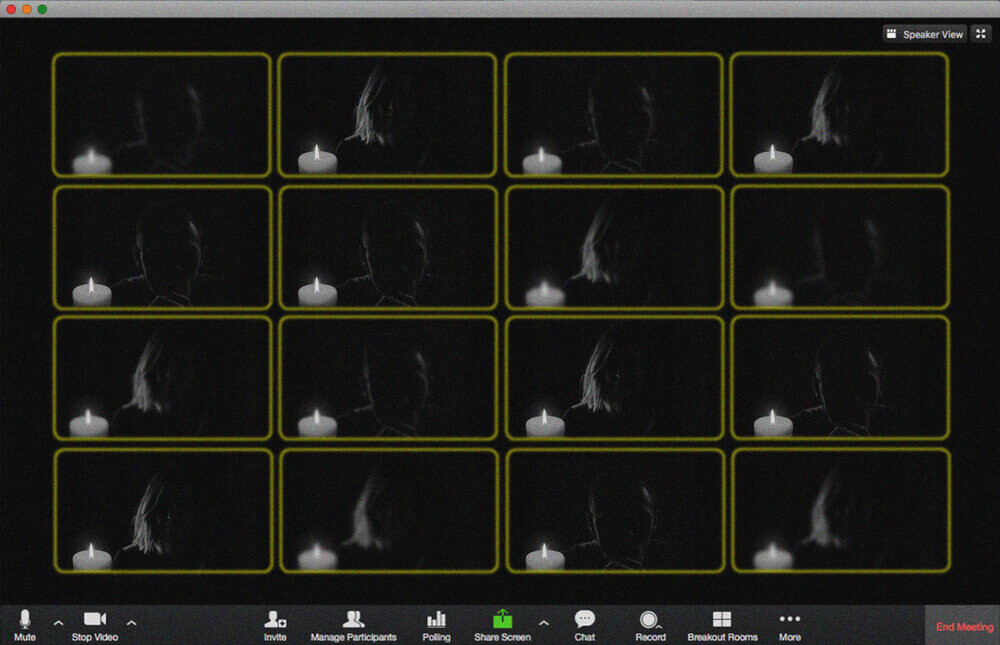 Unlike normal Zoom meetings, anything that identifies you, such as your face or your name, is completely absent. At the Ends of the Day is both communal and reflective; a late night antidote to Zoom fatigue.